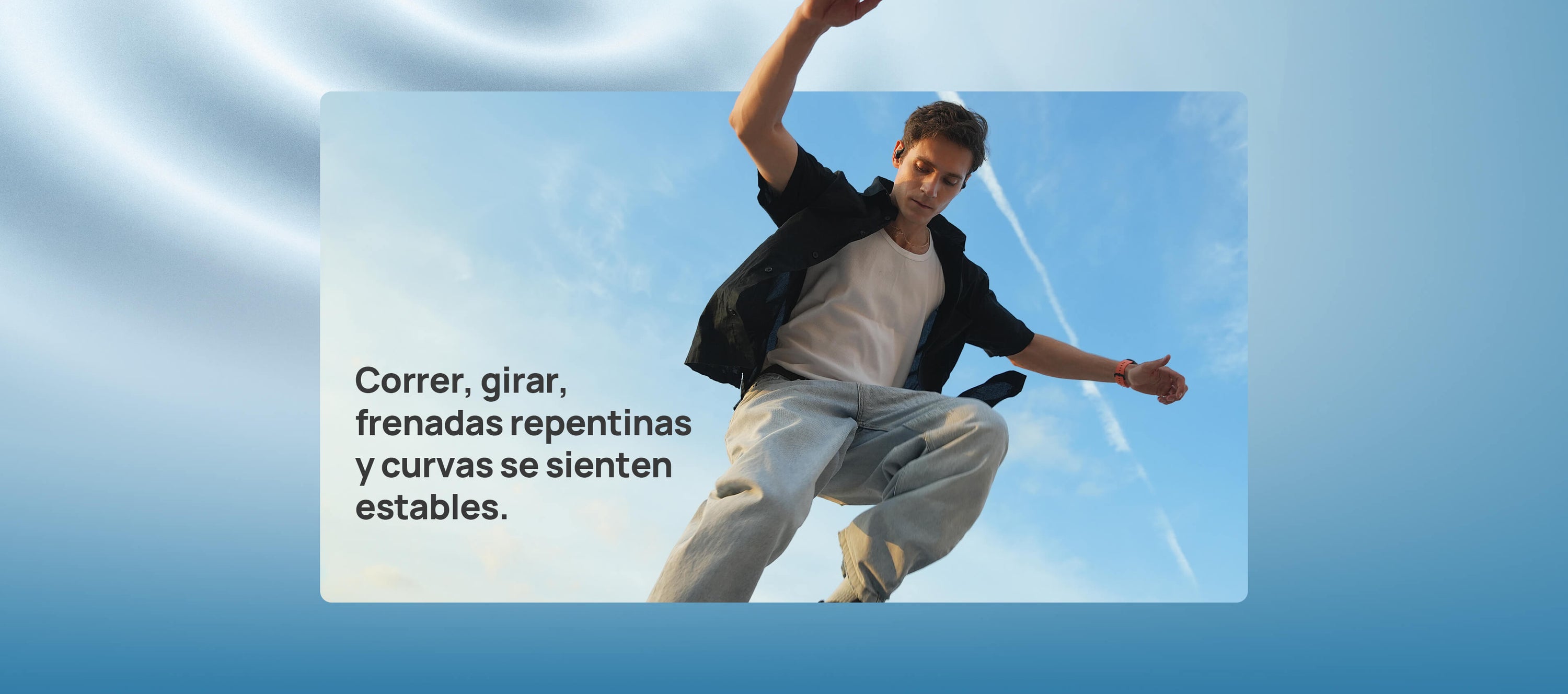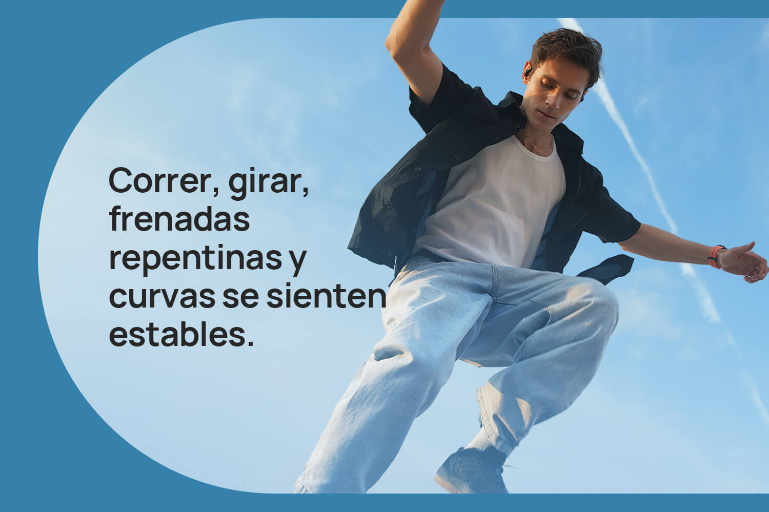 Resistencia IPX4 al agua y sudor. Carreras, giros y paradas estables, para entrenar con diversión.