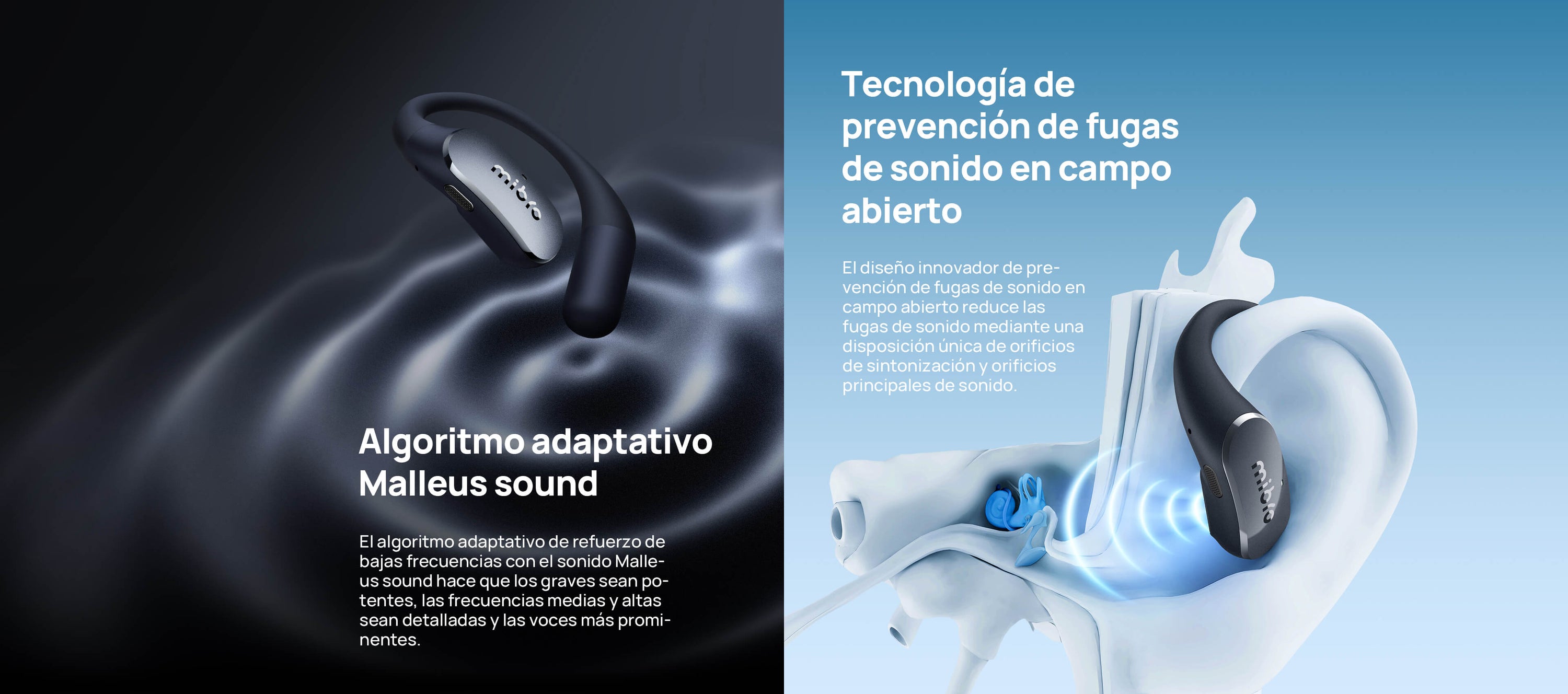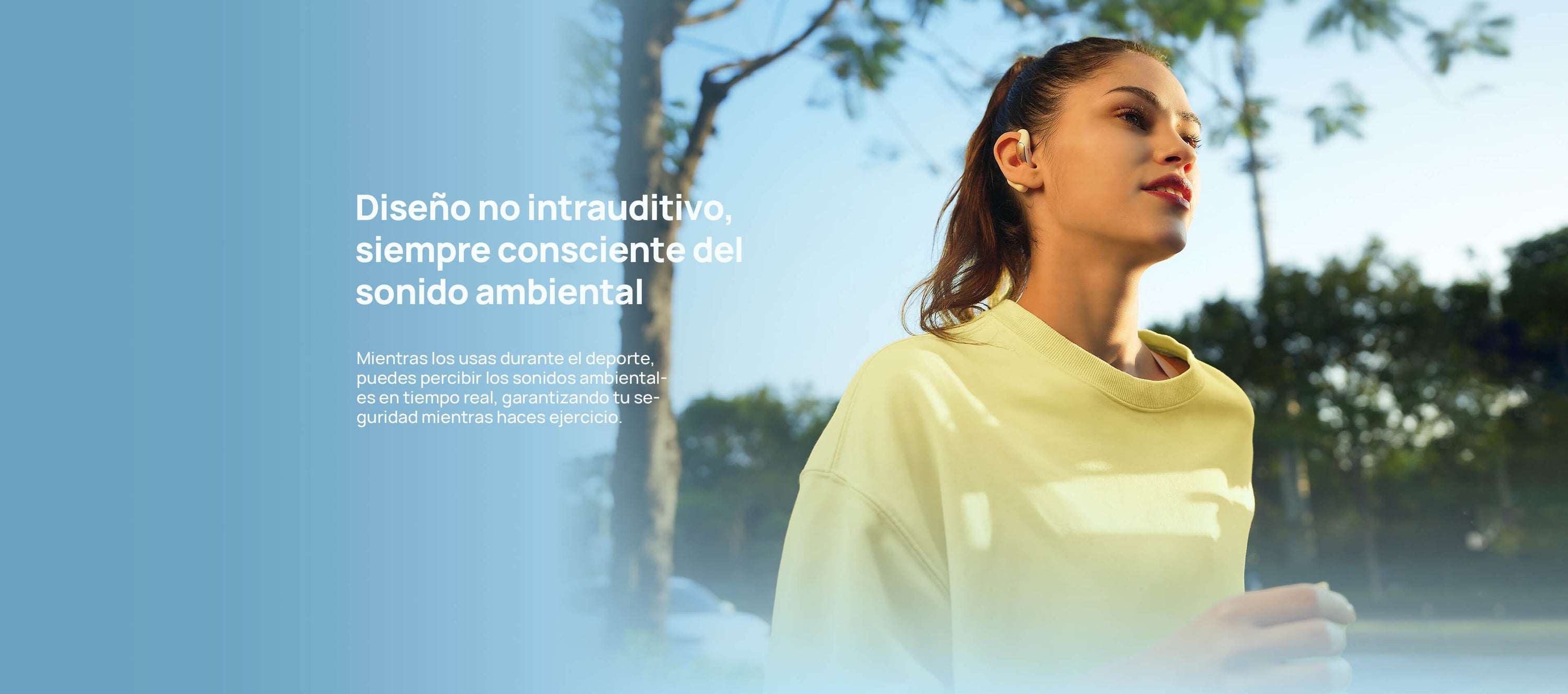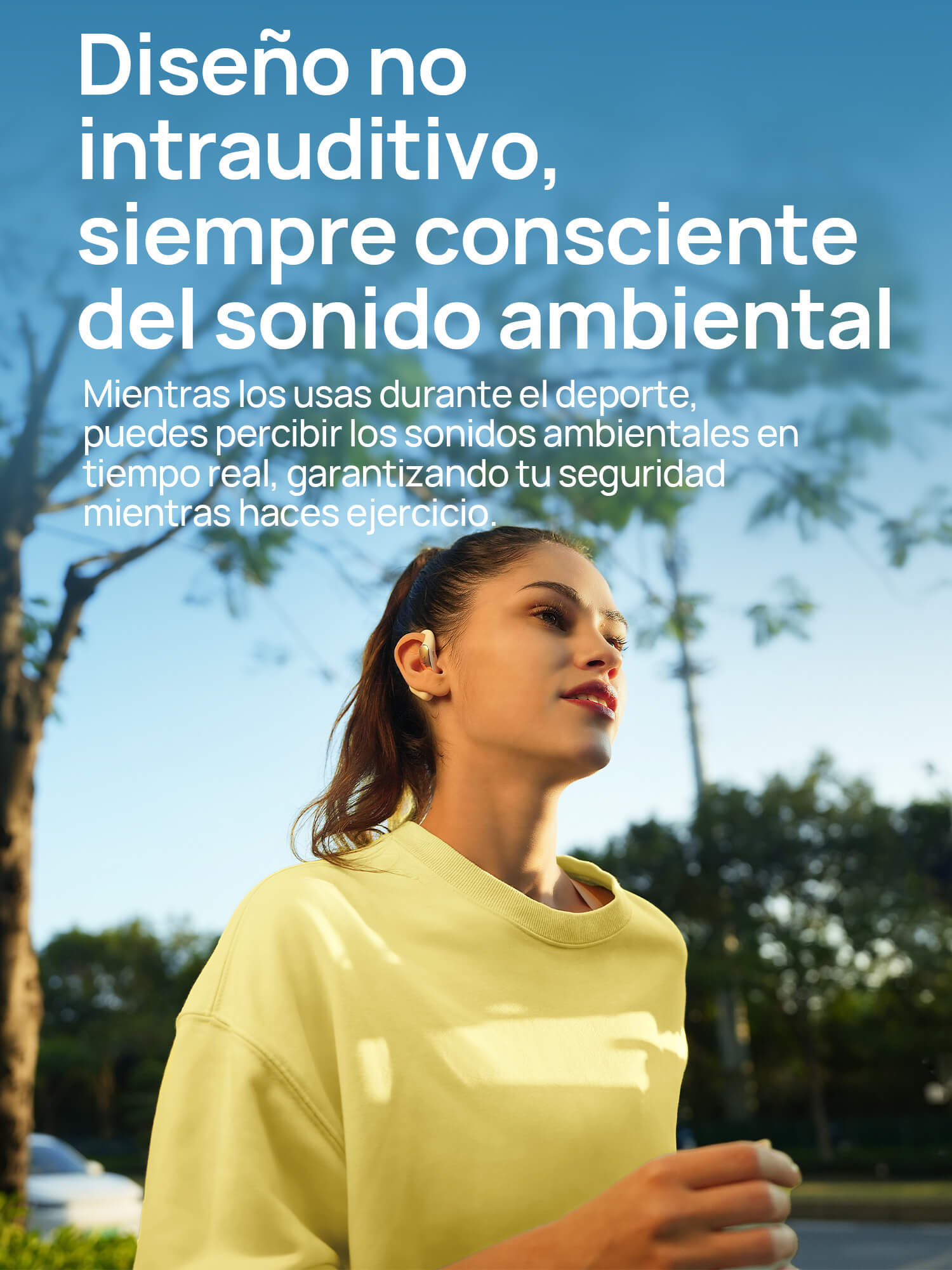 Solo 7,2g con estructura open-ear sin presión. Ganchos de titanio delgado y silicona molecular, antideslizantes e hipoalergénicos.