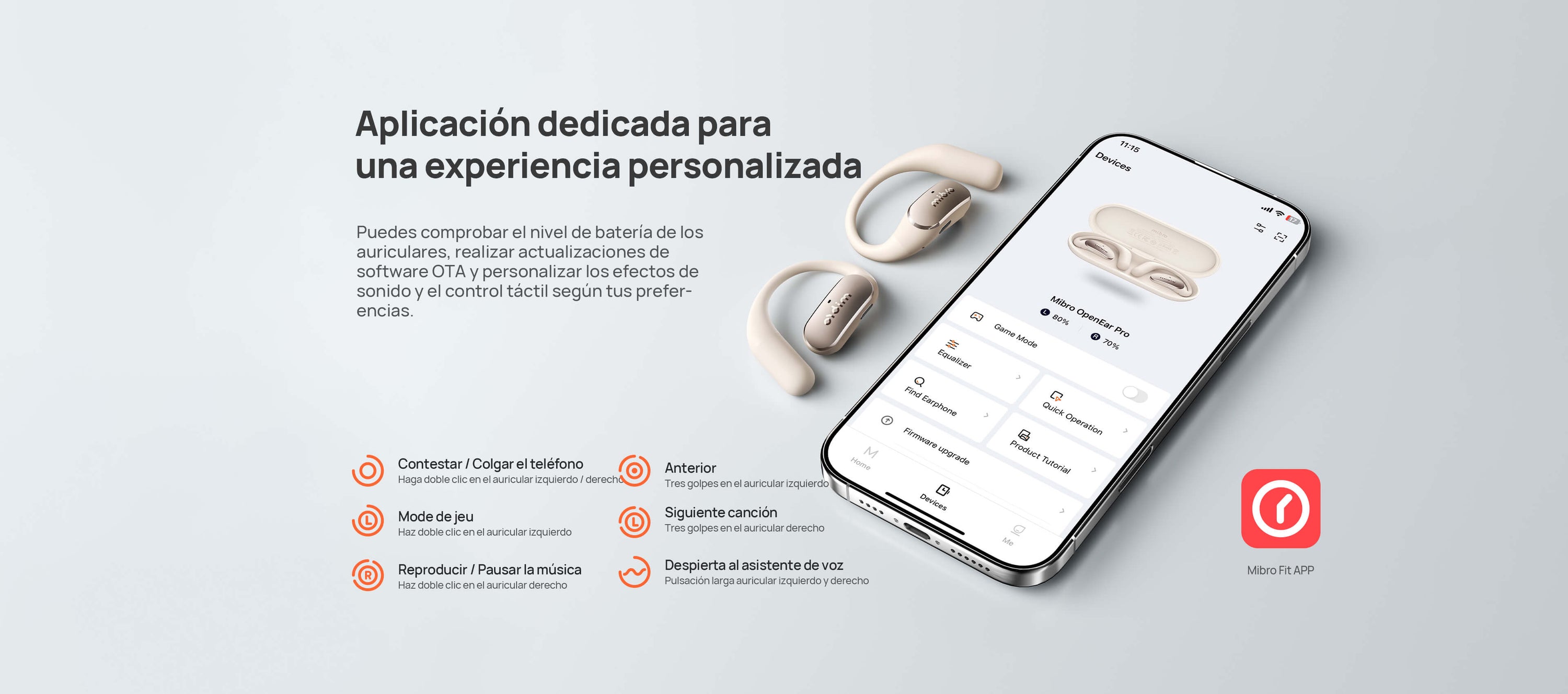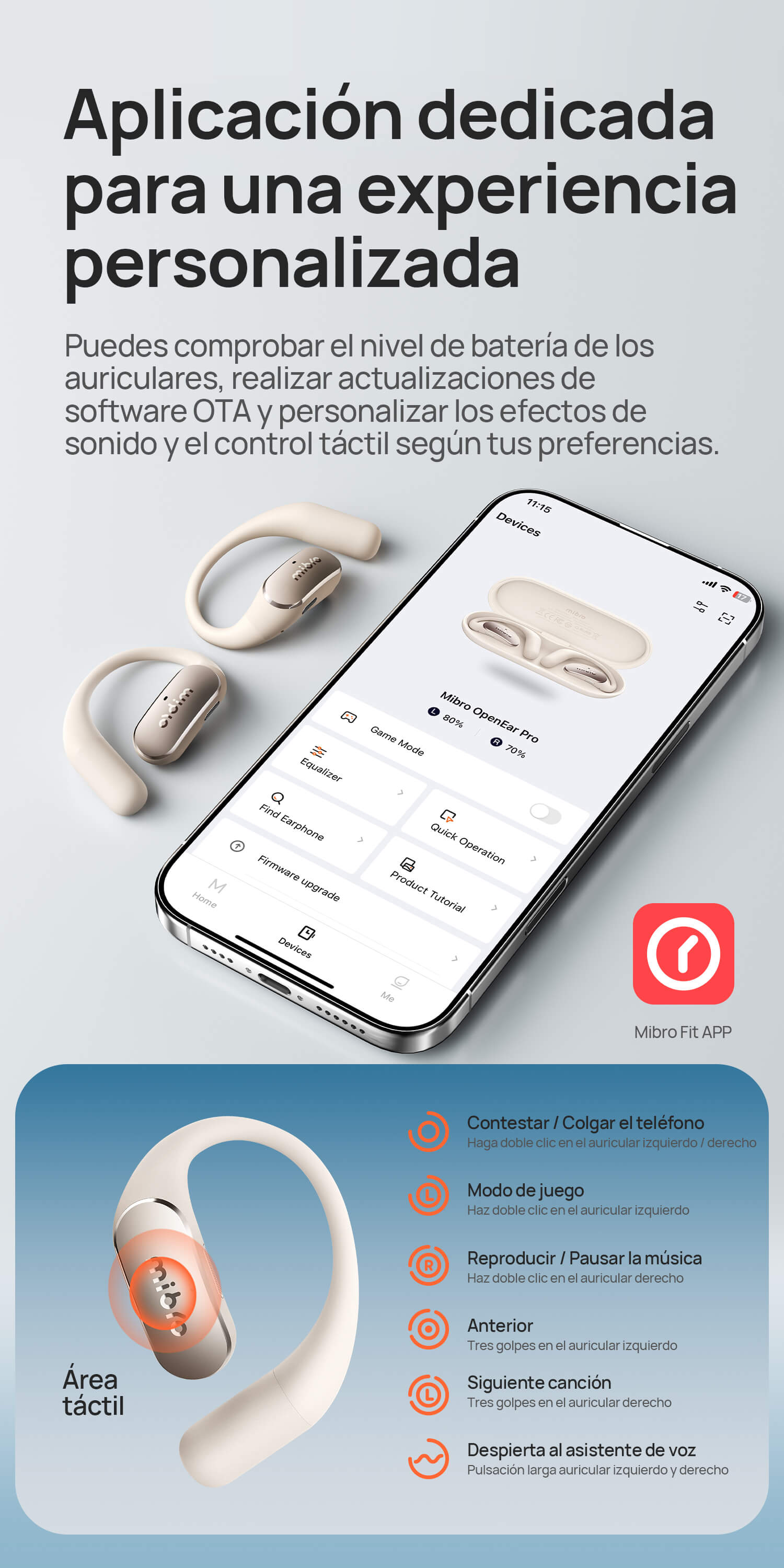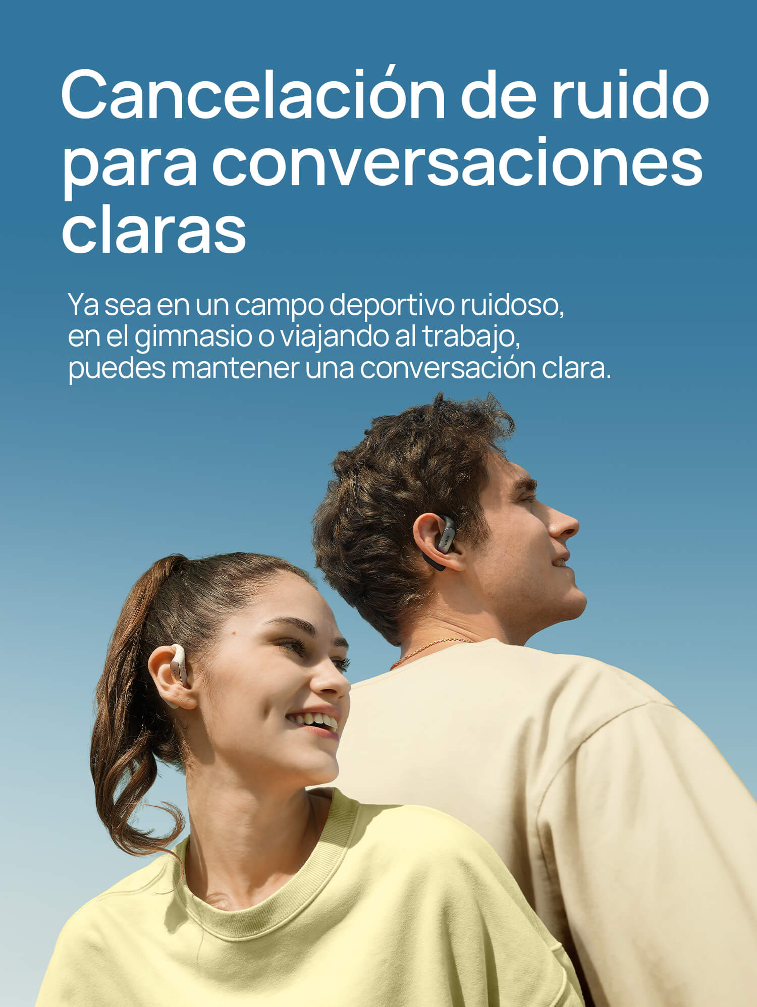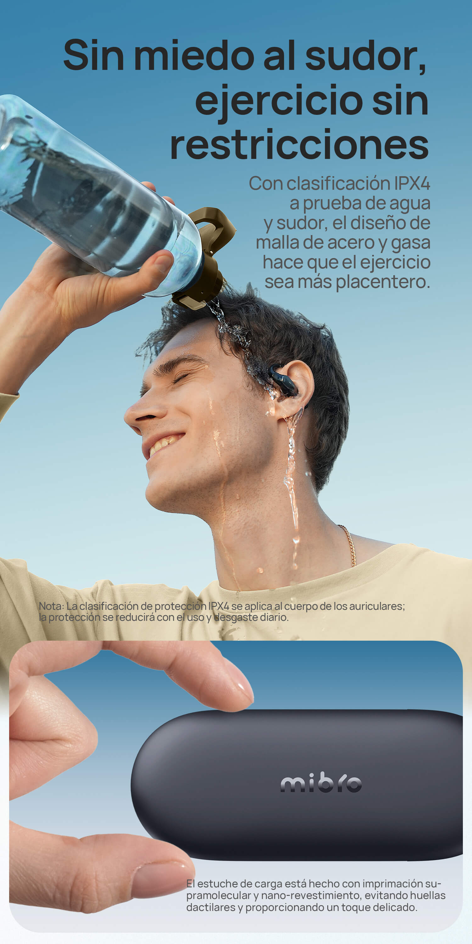Solo 7,2g con estructura open-ear sin presión. Ganchos de titanio delgado y silicona molecular, antideslizantes e hipoalergénicos.
