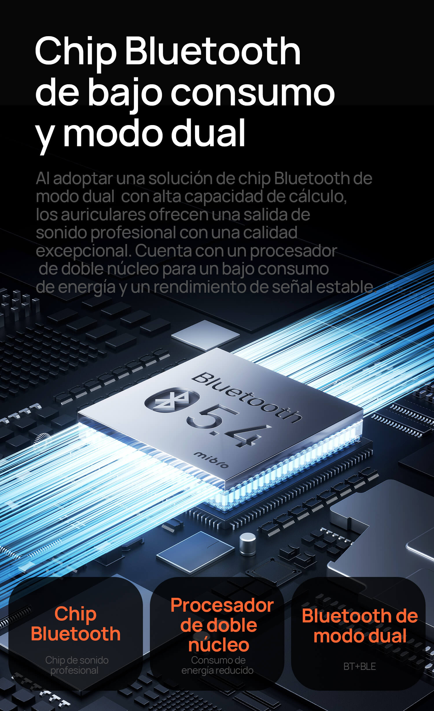 Toca para play/pausa, desliza para volumen. Bluetooth 5.4 conecta 2 dispositivos (ej. teléfono + laptop) al mismo tiempo.