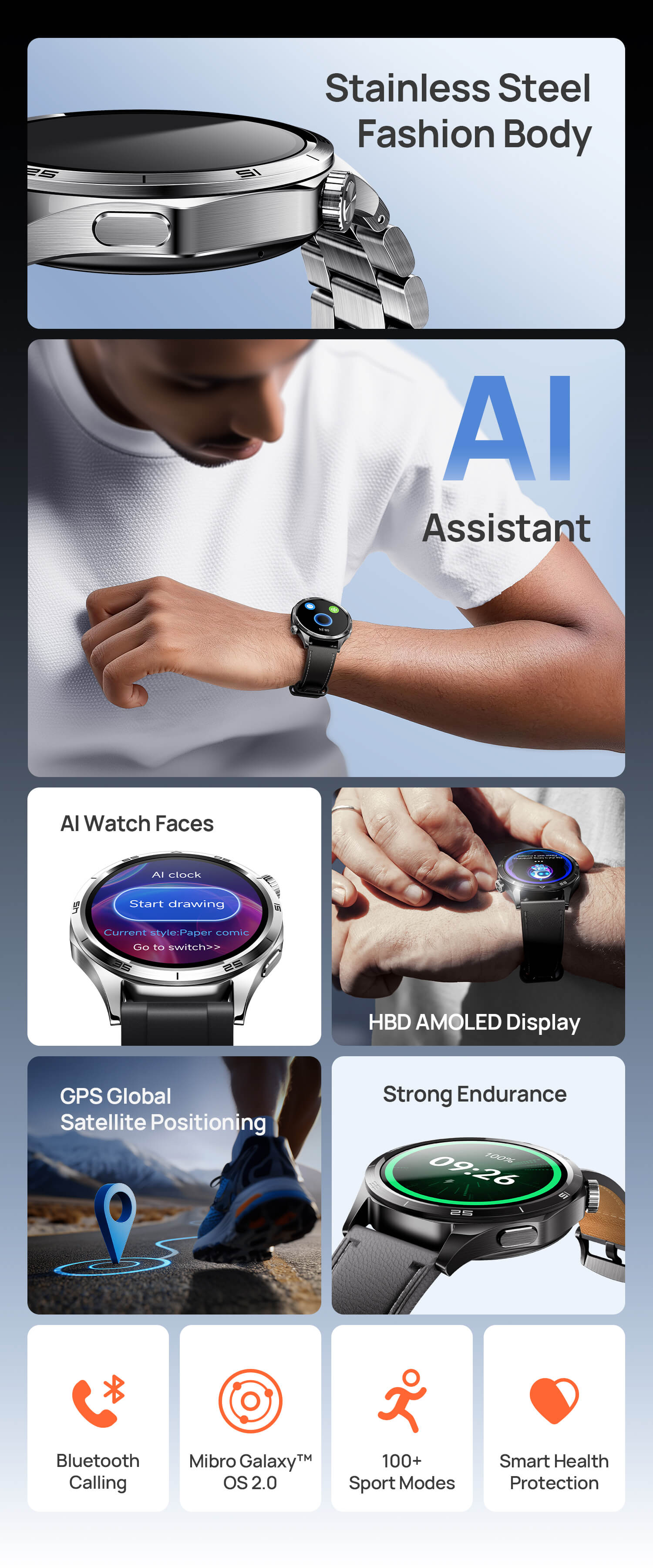 Experience up to 10 days of battery life with smart power management, paired with the intuitive Mibro Galaxy OS 2.0 for a seamless, personalized wearable experience.