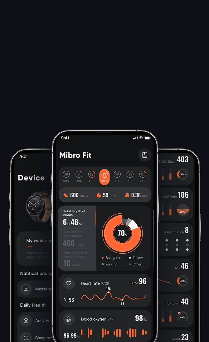 Stay informed with 24/7 heart rate, blood oxygen, stress, and sleep monitoring—powered by advanced sensors for reliable health insights.