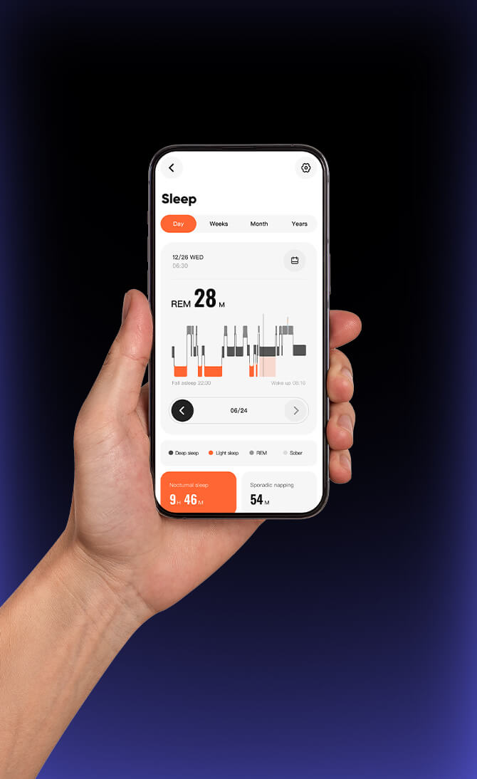 Wear overnight for comprehensive sleep quality scoring and timely adjustment of irregular sleep patterns.