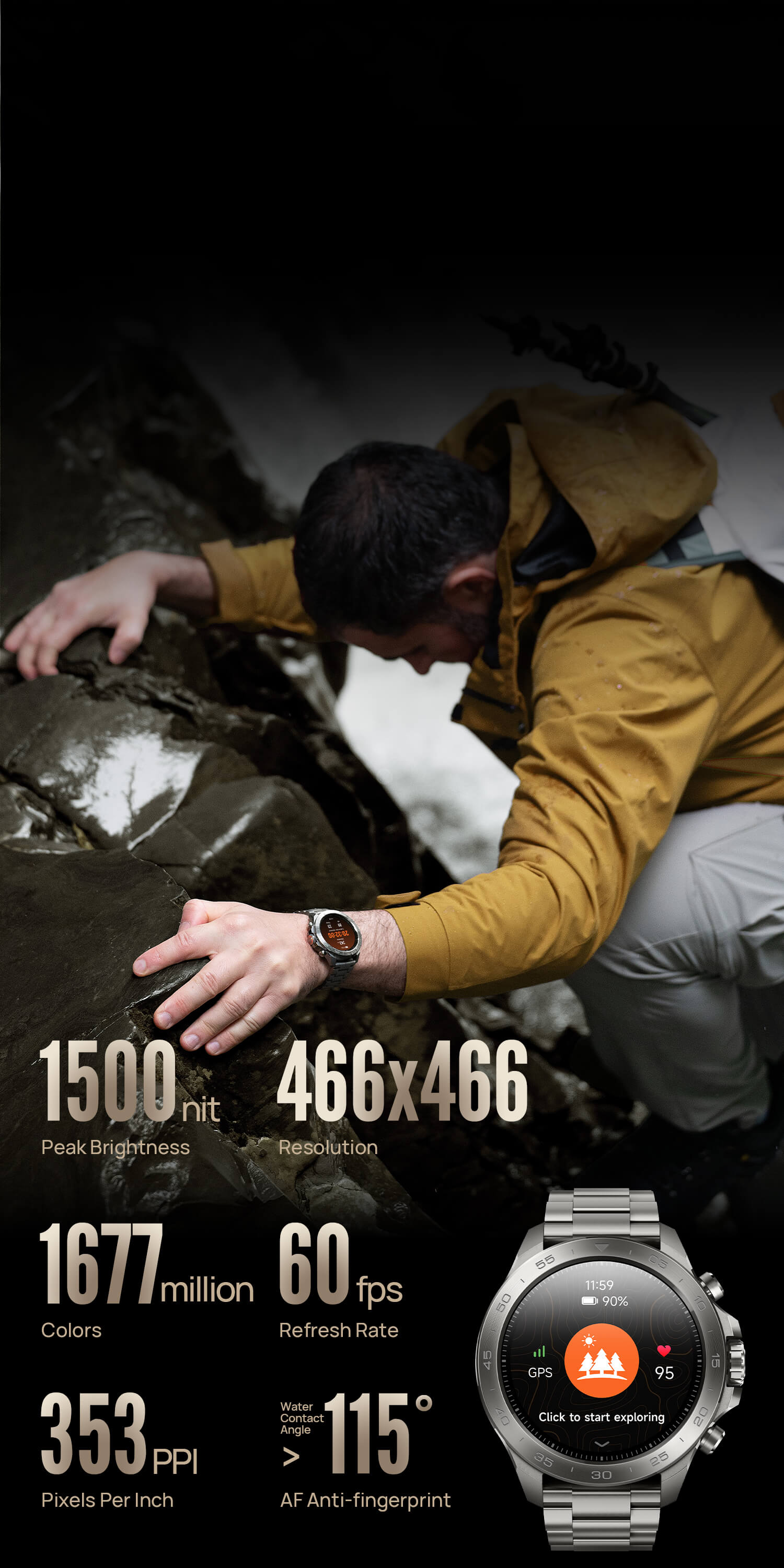 Essential Tools: Integrated compass, blood oxygen meter, barometer, weather alerts, lunar phase, and other tools to tackle various outdoor challenges.