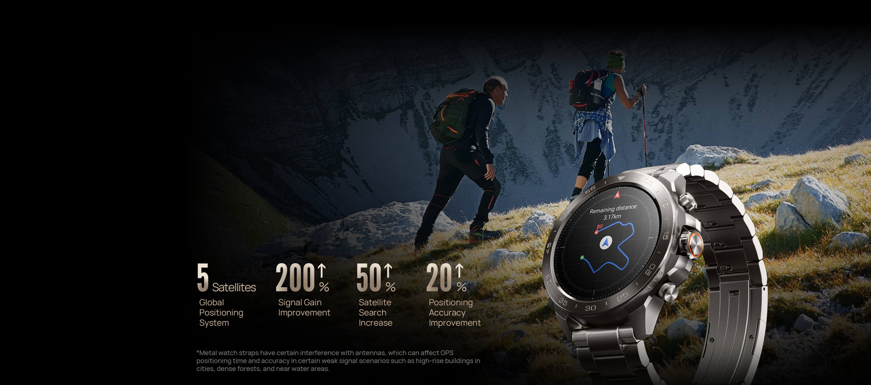 Built-in dual-frequency GNSS positioning chip, supporting L1+L5 GPS bands, offering wider signal coverage, higher energy efficiency, and more accurate distance and route tracking.