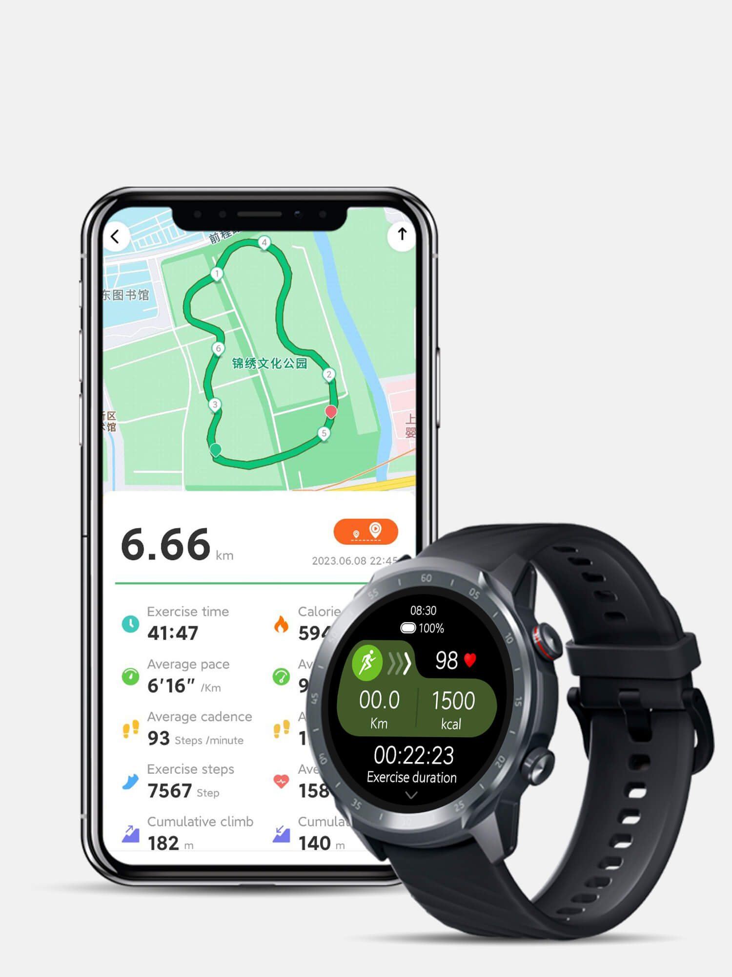 Associé au GPS de votre téléphone pour des entraînements visualisés. Étanchéité 2ATM avec 70 modes sportifs spécialisés.