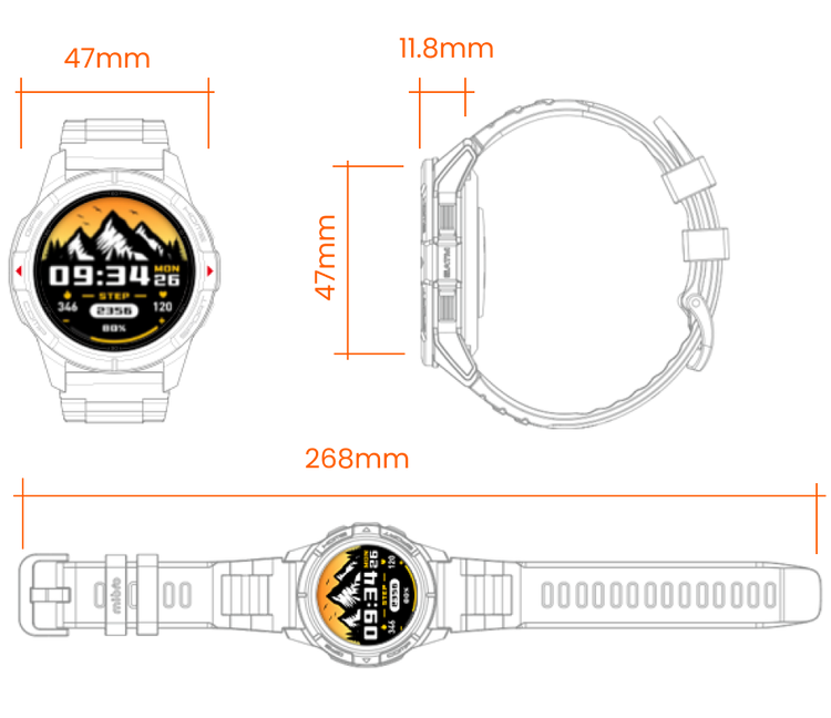 Écran AMOLED 1000nit, facilement visible sous la lumière du soleil. Accédez à vos notifications, outils de santé, localisation du téléphone et plus encore, le tout en un.