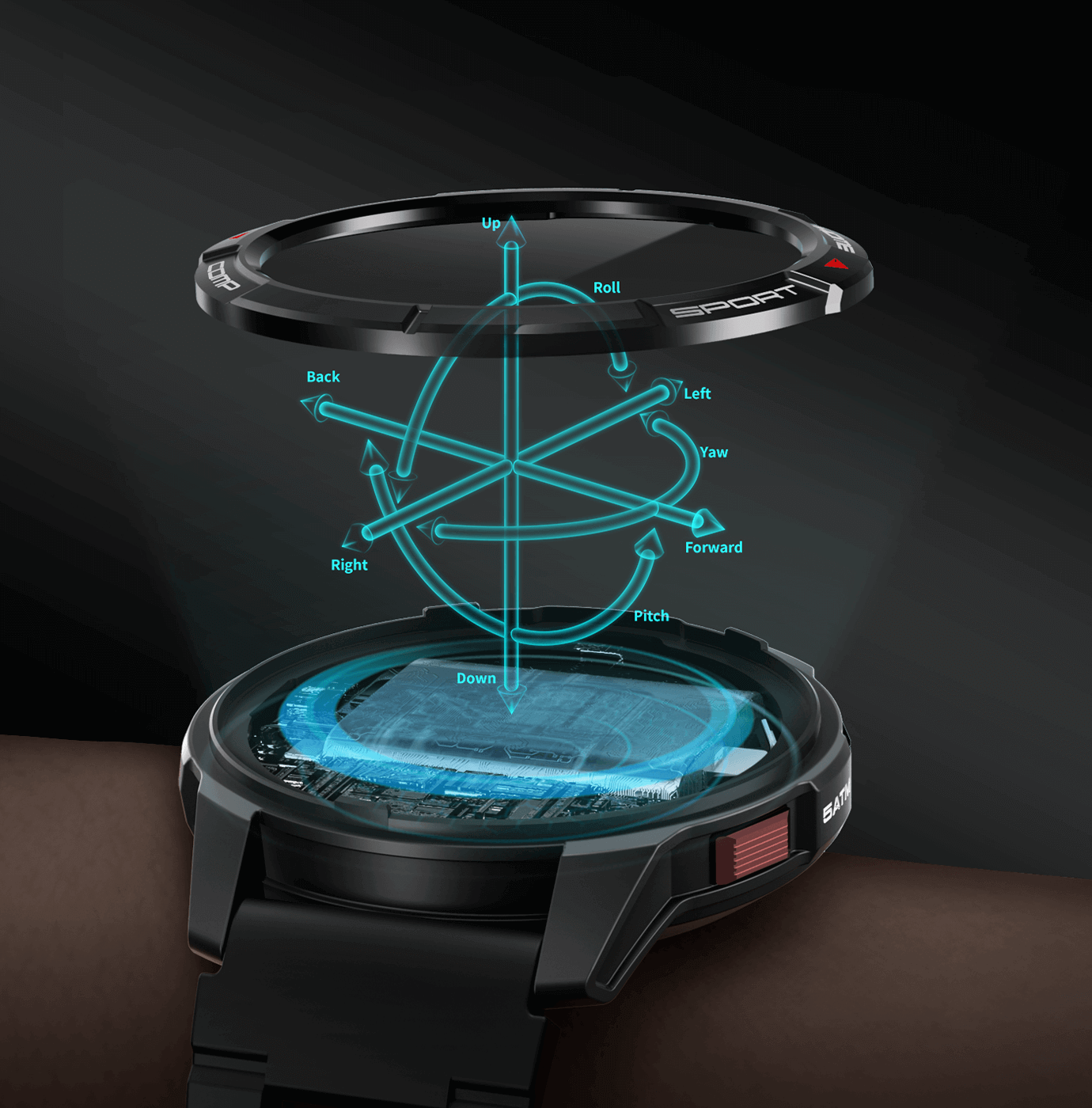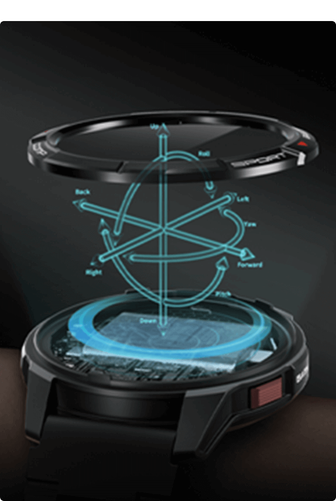 Equipped with acceleration, gyroscope, geomagnetic, and pressure sensors for precise motion data, including counting, frequency, amplitude, orientation, and lifting height during motion.