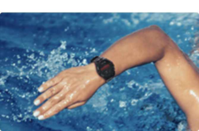 Étanchéité 5ATM, 150 modes sportifs avec l'algorithme SeekBeats™ Motion. Capteurs à 10 axes pour une détection précise des mouvements, y compris la reconnaissance des coups de nage, la fréquence cardiaque sous l'eau et le suivi SWOLF.