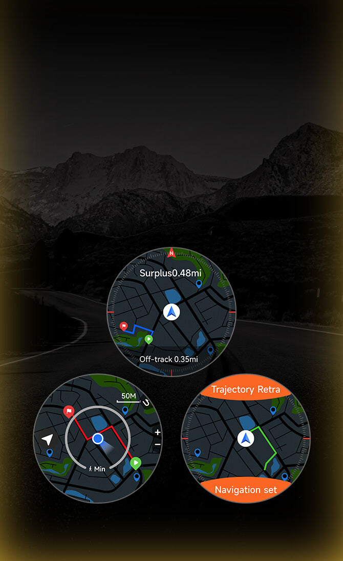 Independent map navigation: The watch is equipped with a GPS chip, which can complete positioning and navigation without the need for internet connection. Support route following, deviation reminder, and one click return, making outdoor mountaineering, off-road trips, and hiking safer and more reliable.