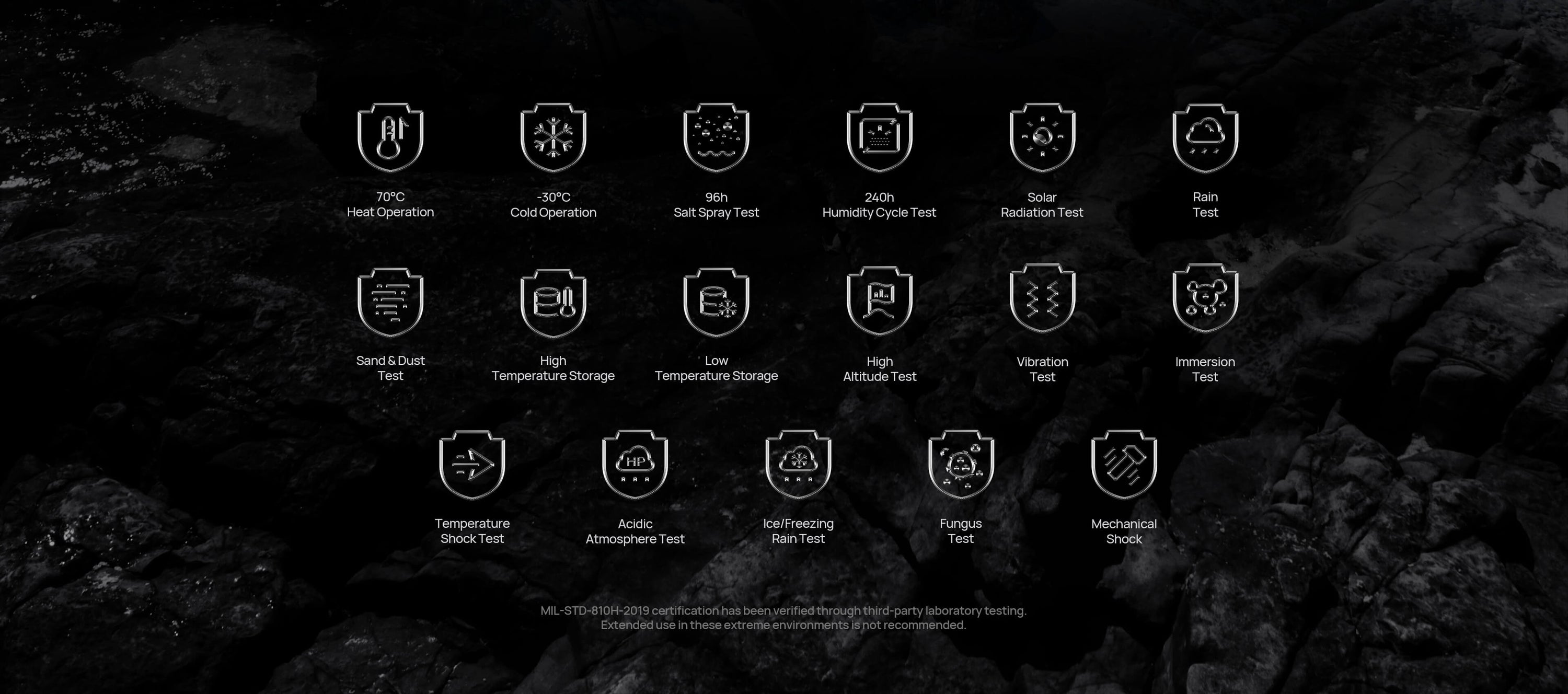 Complies with 17 military-grade specifications under MIL-STD-810H-2019,
