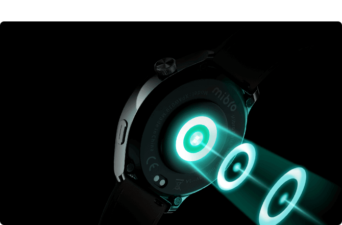 Sistema di rilevamento biologico a matrice circolare per monitorare 24/7 il battito cardiaco, la misurazione di SpO2, l'allenamento respiratorio, il sonno, la salute femminile e lo stress.