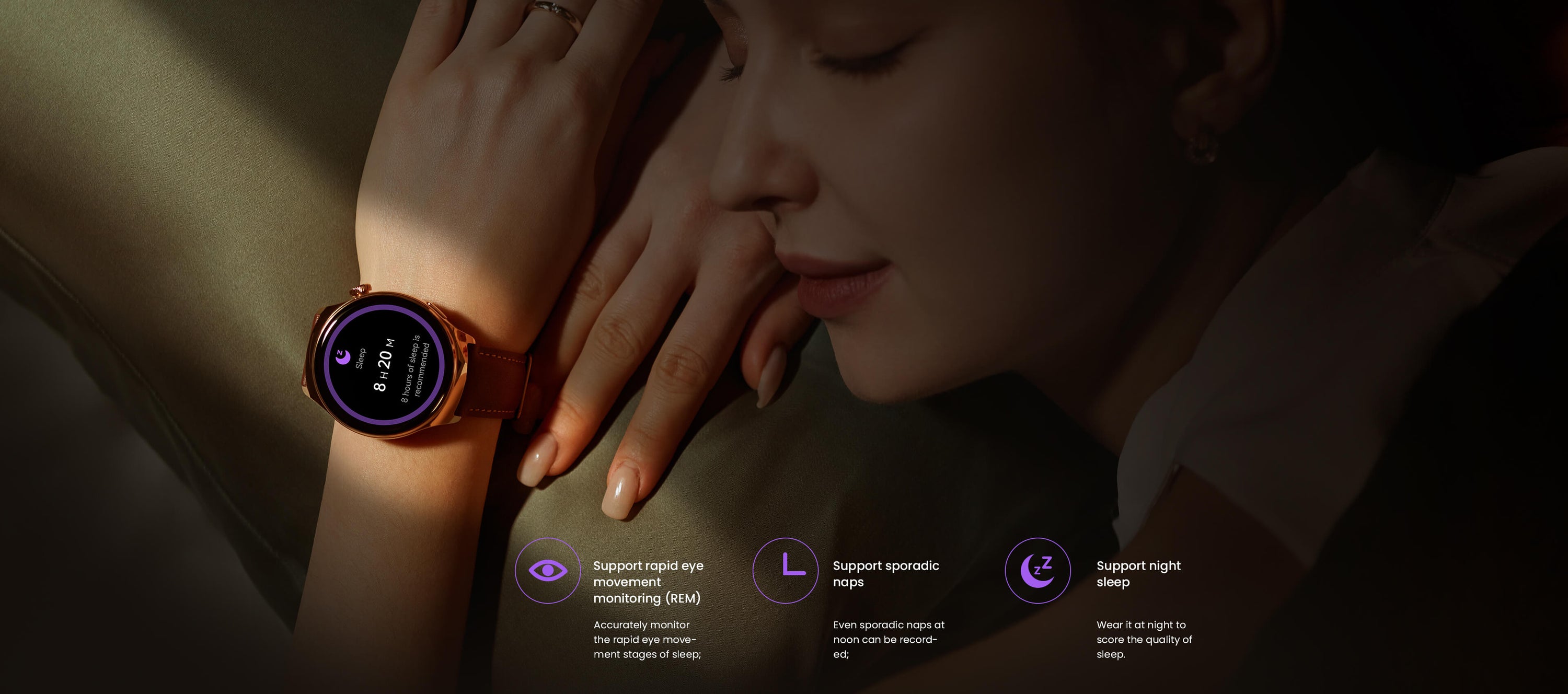 Monitoraggio REM: Traccia accuratamente le fasi del sonno con movimenti oculari rapidi.Sonnellini sporadici: Registra anche i brevi pisolini diurni.Sonno notturno: Monitora e valuta la qualità del sonno notturno.