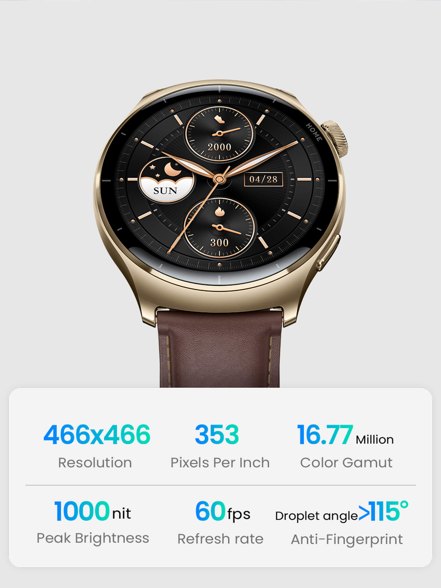 1.32"Amoled466*466,AOD,1000nits,PPI 353