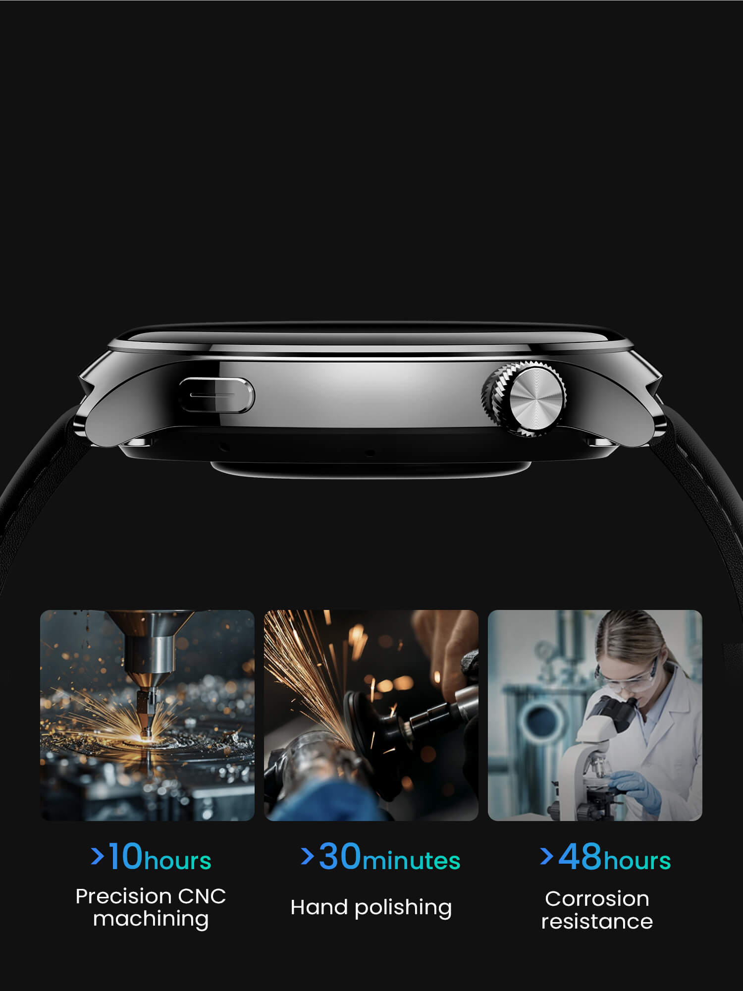 Schermo AMOLED UHD da 1,32 pollici con corpo in metallo elegante e rivestimento ceramico per una sensazione premium.